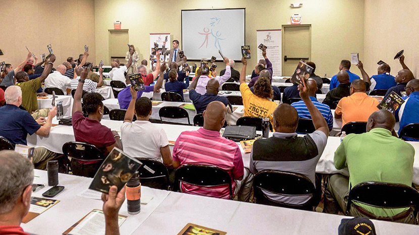 As convenções são uma oportunidade perfeita para alcançar organizações afins. As filiais de Unidos pelos Direitos Humanos (UHR) participam nestas por todo o mundo e têm stands com pessoas. As convenções variam entre professores de ciências sociais a simpósios sobre o tráfico humano, onde oferecemos materiais educativos, reunimo‑nos e colaboramos com outros líderes no campo dos direitos humanos.